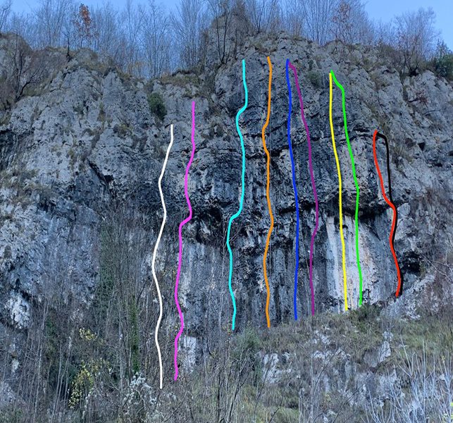 La falesia, che fornisce ancora possibilità di espansione, propone una scalata piuttosto fisica con chiusure importanti su parete leggermente strapiombante e necessita di saggio uso dei piedi, in particolare nelle uscite verticali. Consigliato l’uso del casco, soprattutto per gli assicuratori. Un ringraziamento a Michele ed Andrea per...
