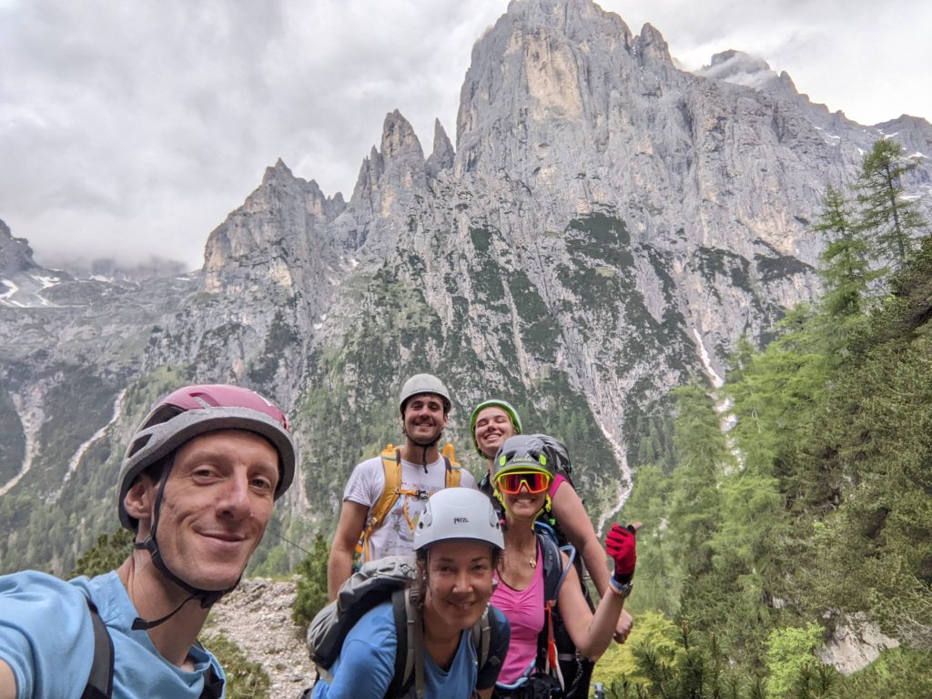 Da solo o con gli amici: Evelin, Stefano, Renato, Sandro, Fede, Ricky e molti altri. Ma oggi…. Oggi è diverso. Oggi accompagno dei clienti. Oggi il mio compito è far capire quanto straordinario sia questo mondo se affrontato nel modo giusto. E sono davvero orgoglioso di poterlo fare qui, dove sono cresciuto come alpinista e come persona, qui in questo straordinario scenario dolomitico chiamato Pale di San Martino.
